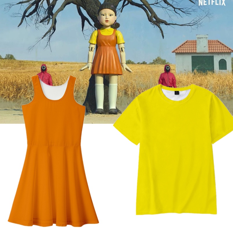 Korean Squid Game Girl Dress Cosplay Two Piece Set Dress Suit Short Sleeves T Shirt Halloween Costume Shopee Singapore
